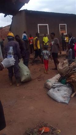 The kampala city council Authority gave out trash cans where the people in the community should dispose their waste . They also will be collecting the waste after every 2 weeks for disposal.The Military through their boss Brigadier Bainomugisha William promised to be cleaning the area every quarter of the year.we also gave out brooms,sacks,hoes ,spades to the community leaders to be used during clean ups.